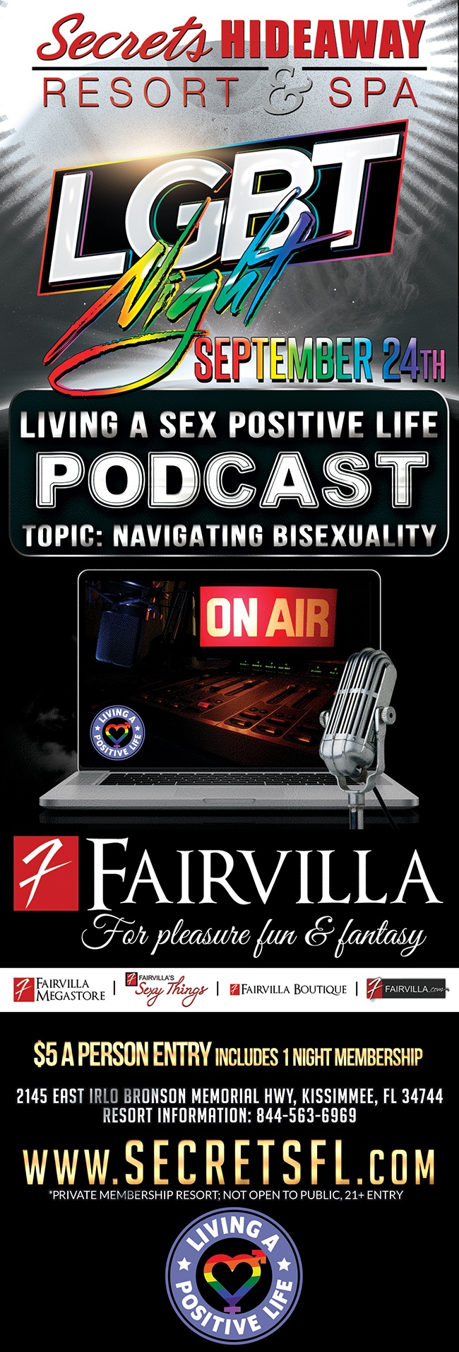 This exciting event coincides with our already popular #LGBT Night at #ClubSecret and only $5 covers your event admission, including a one-day membership to the resort.